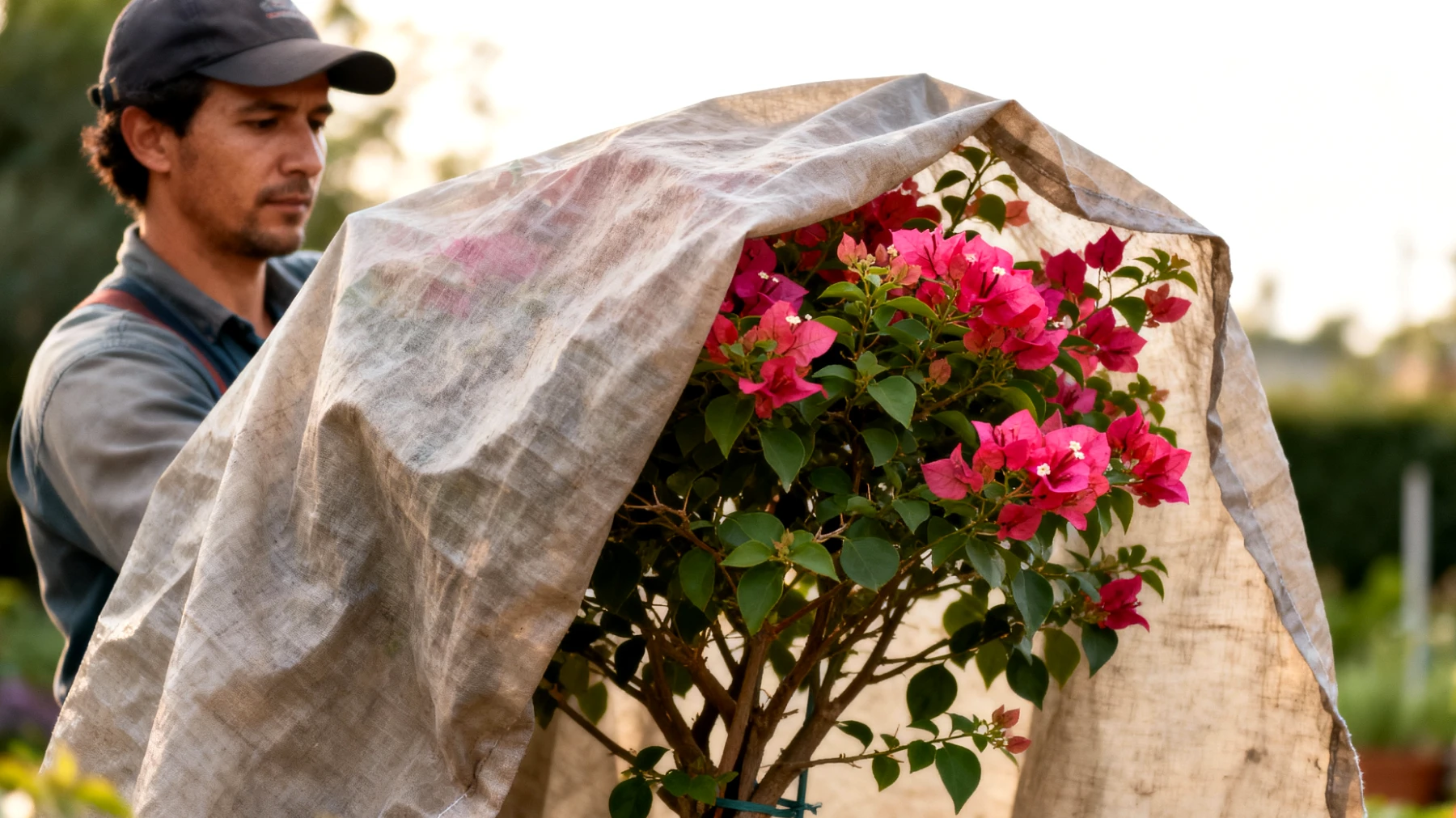 Chi ha piantato la bouganville direttamente in giardino deve agire in modo diverso. Il trasferimento non è un’opzione, ma si può ricorrere all’uso di tessuto non tessuto (TNT) per proteggerla. Questo materiale, traspirante e leggero, crea un microclima che attenua gli sbalzi termici e impedisce la formazione di brina sulle foglie. La copertura va applicata di sera, dopo che la pianta ha ricevuto la sua razione di luce durante il giorno, e deve arrivare fino alla base, dove si trovano le radici più vulnerabili.