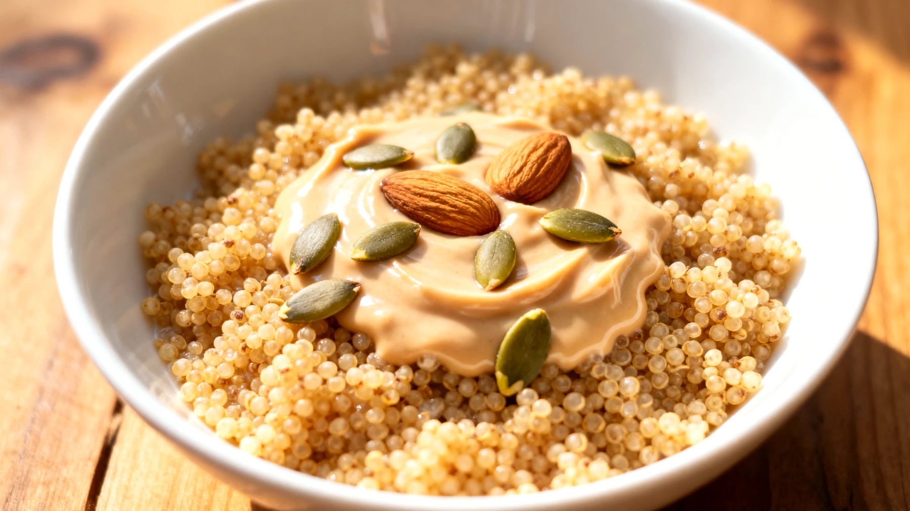 La preparazione richiede letteralmente un minuto: si versa l’amaranto soffiato in una ciotola, si aggiunge un cucchiaio di crema di mandorle mescolando per distribuirla uniformemente, e si completa con un cucchiaino di semi di zucca. La praticità è totale, rendendolo ideale anche per chi ha ritmi frenetici e poco tempo da dedicare agli spuntini mattutini. Questa combinazione rappresenta un esempio concreto di come la nutrizione vegetale possa essere contemporaneamente completa, gustosa e funzionale. Per vegani e vegetariani alla ricerca di alternative nutrienti ai cereali convenzionali, l’amaranto soffiato con crema di mandorle e semi di zucca offre una soluzione equilibrata che trasforma la pausa di metà mattina in un momento di autentico nutrimento, senza scendere a compromessi tra piacere e benessere.