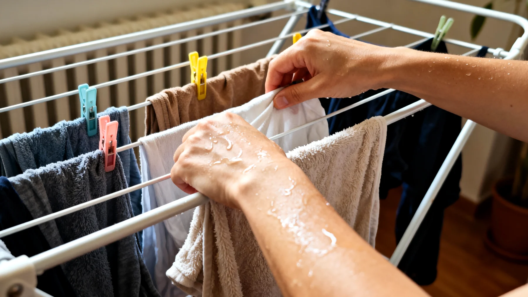 Una delle abitudini più sottovalutate è l’accatastamento dei capi sullo stendibiancheria. Spesso per necessità si appendono maglie, pantaloni e asciugamani troppo vicini, nella speranza che l’aria faccia comunque il suo dovere. Il risultato è un aumento significativo del tempo di asciugatura e un accumulo localizzato di vapore. Quando i capi sono troppo ravvicinati, l’aria non riesce a circolare efficacemente tra le fibre del tessuto, e le zone sovrapposte rimangono umide più a lungo, creando microambienti dove i batteri proliferano.