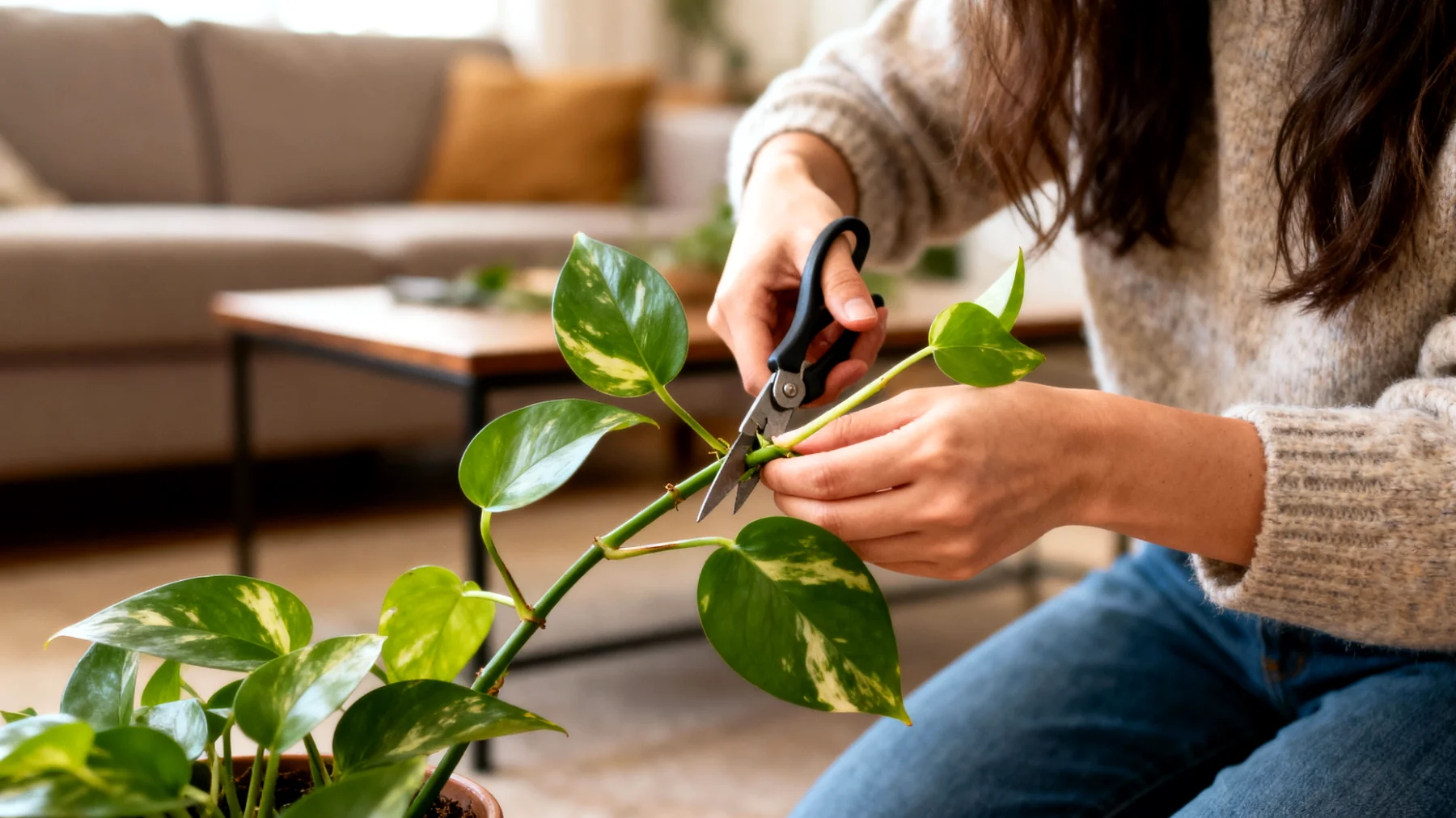 Il punto di partenza è la potatura, ma non basta accorciare a caso. Tagliare i tralci in modo corretto permette al Pothos di reagire producendo nuove foglie più vicine al centro della pianta, migliorandone l’aspetto complessivo. Questo stimola infatti la produzione di nuovi germogli laterali, rendendo la chioma più folta e compatta.