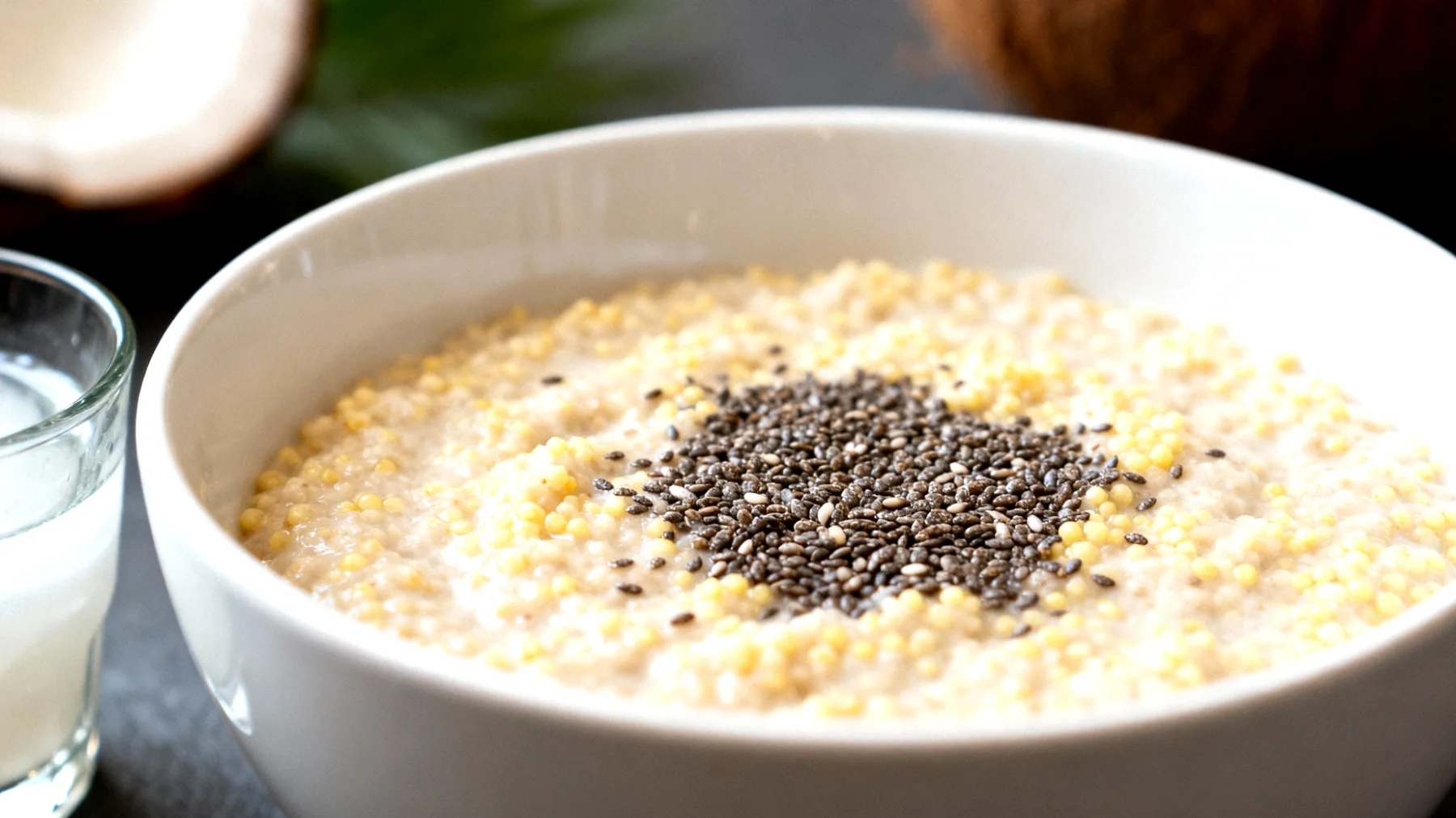 La versione da preparare la sera precedente risponde perfettamente alle esigenze di chi non può permettersi mezz’ora ai fornelli prima dell’alba. In un barattolo di vetro, unite 40 grammi di miglio decorticato, un cucchiaio di semi di chia, 200 ml di acqua di cocco e lasciate riposare in frigorifero. Al mattino, scaldate brevemente o consumate a temperatura ambiente: il porridge avrà raggiunto una consistenza cremosa grazie alla gelatinizzazione degli amidi del miglio e al gel formato dalla fibra solubile dei semi di chia.