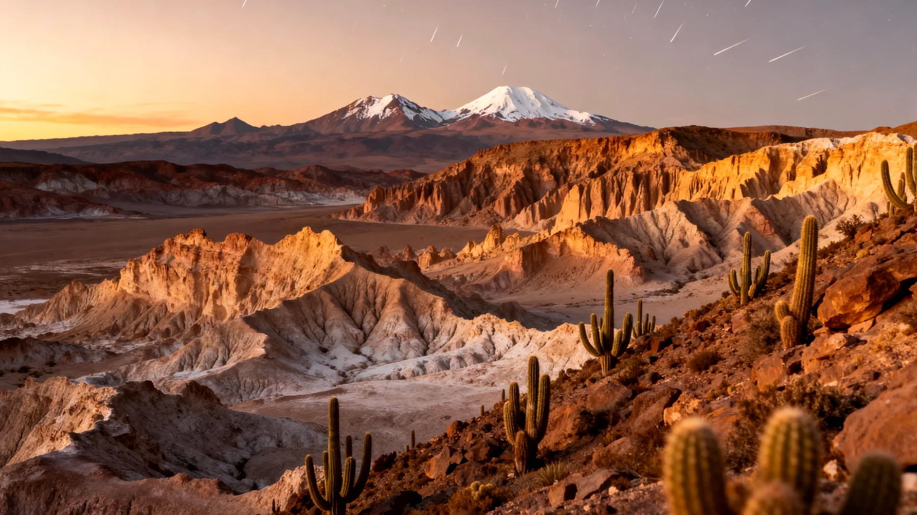 Questo piccolo villaggio andino, circondato da vulcani imponenti e lagune color turchese, offre un concentrato di meraviglie naturali racchiuse in pochi chilometri quadrati. La sua posizione privilegiata a 2.400 metri di altitudine lo rende il campo base ideale per esplorare uno dei territori più surreali del pianeta, dove deserti salini candidi come neve si alternano a geyser fumanti e vallate scolpite dal vento in forme che sfidano l’immaginazione.