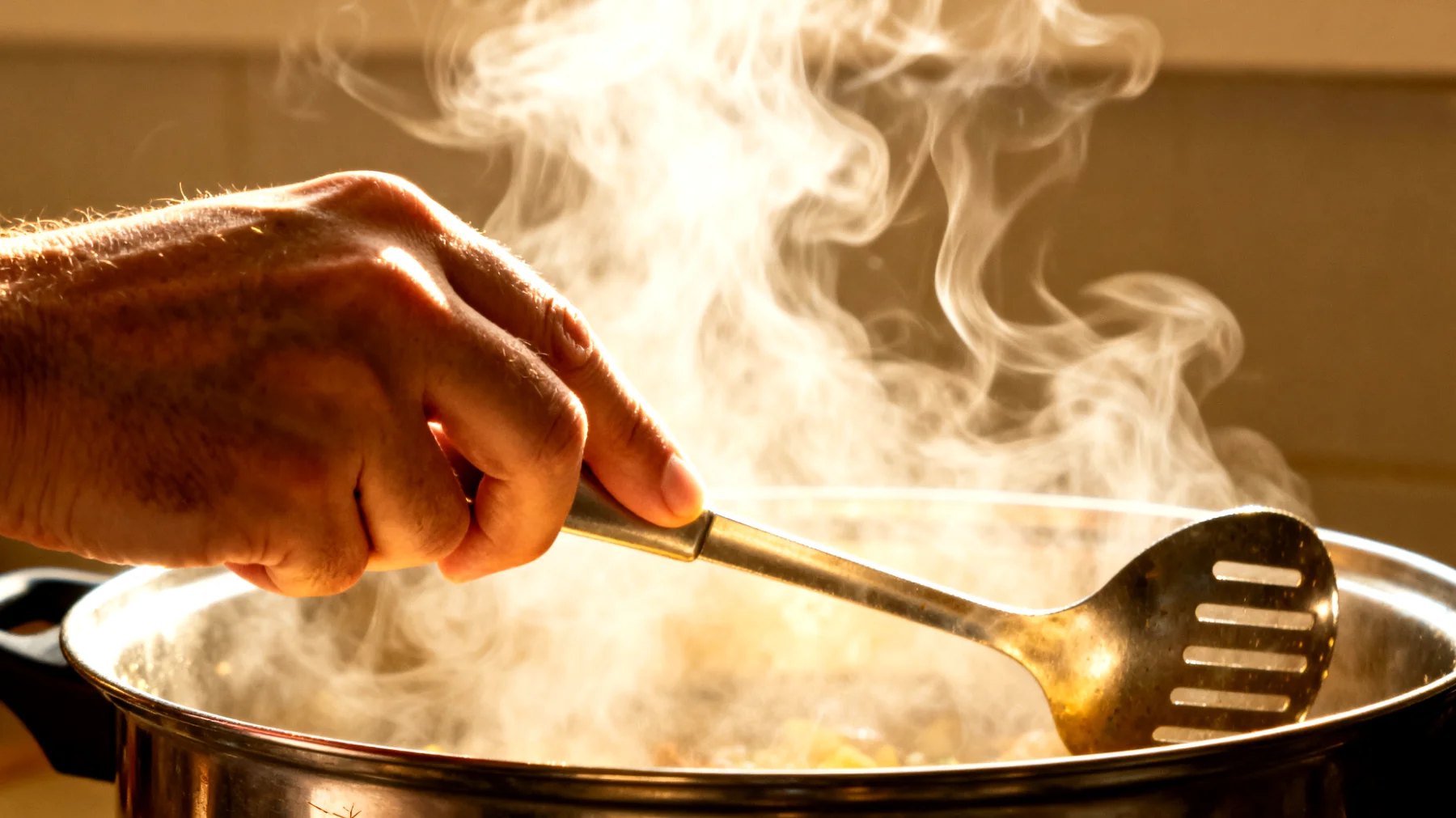 È su questa funzione di separazione selettiva che mostra il suo vero valore. La capacità di discriminare tra fase solida e fase liquida, mantenendo la prima e lasciando defluire la seconda, è ciò che rende questo utensile unico e insostituibile. Il cucchiaio forato è eccellente per schiumare brodi e zuppe mentre sobbollono: elimina la parte superficiale proteica che altera il gusto. Durante la cottura prolungata di brodi, specie quelli di carne, si forma in superficie una schiuma grigiastra composta da proteine coagulate. Rimuoverla consente di ottenere un brodo più limpido e dal sapore più pulito.