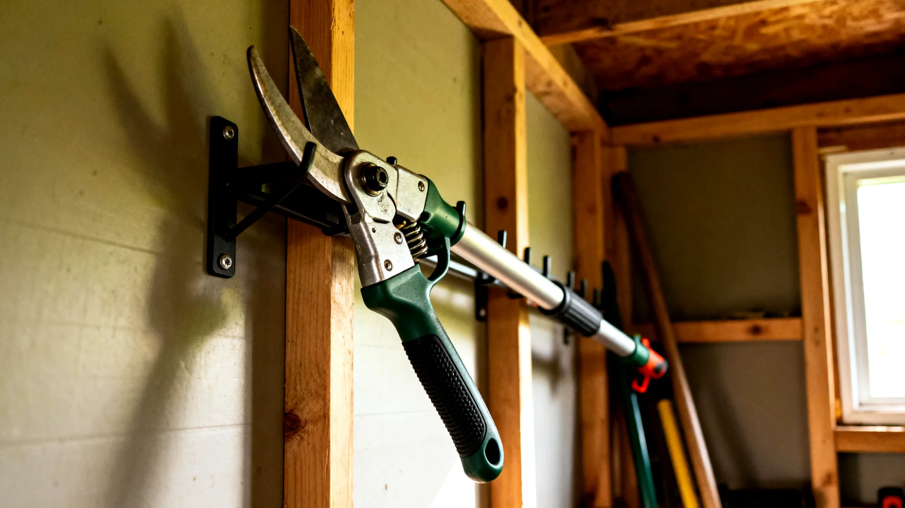 L’orientamento errato è un errore comune. Molte persone appendono il potatore con la testa in alto, pensando che sia la posizione più naturale. Se non è equilibrato correttamente, tende a inclinarsi o ruotare sul gancio. Appendere con la testa verso il basso, o in orizzontale, è più stabile dal punto di vista meccanico e offre maggiore sicurezza. Infine, se gli attrezzi sono troppo vicini sulla stessa parete, si urtano tra loro ogni volta che se ne prende uno. Lasciare almeno 10-15 centimetri di spazio tra un gancio e l’altro migliora notevolmente la maneggevolezza.